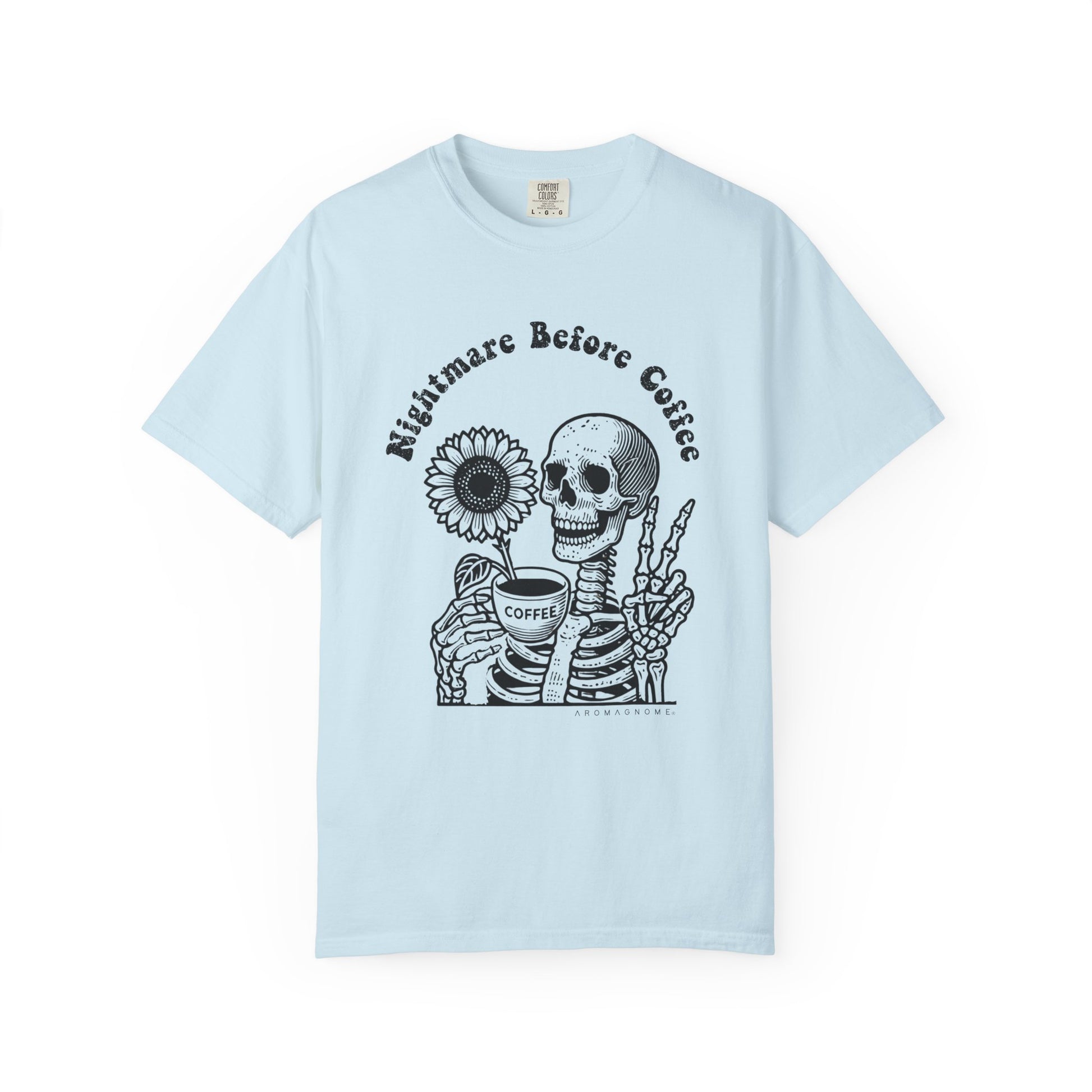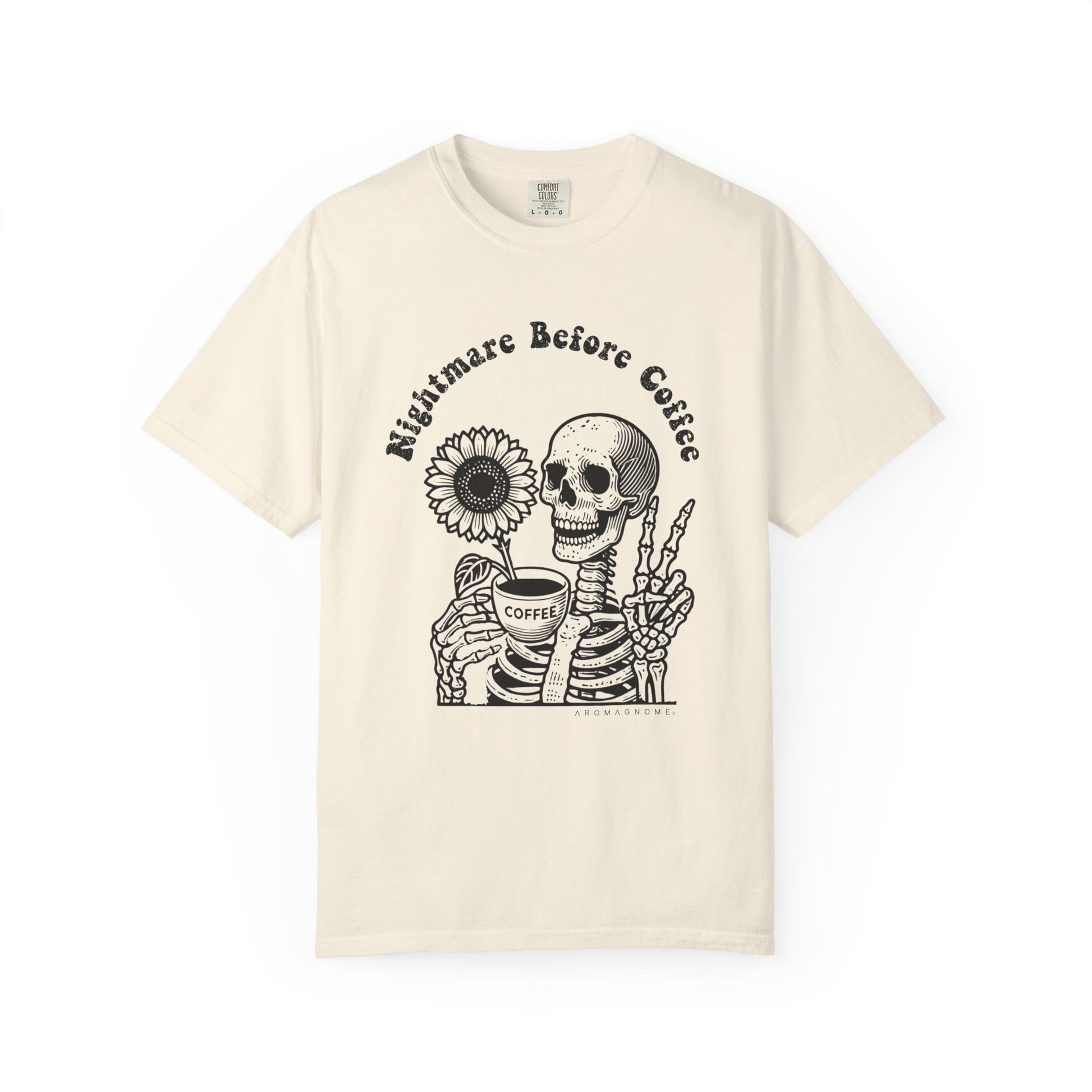 You know the drill—coffee first, everything else later. ☕ This tee is for the caffeine-fueled Gnomies who treat their morning brew like a sacred ritual. Featuring a laid-back skeleton sipping on that life-giving nectar next to a sunflower, this shirt delivers a dose of humor, comfort, and effortlessly cool vibes. Whether you're fueling up for the day or kicking back with your favorite mug, this tee has you covered in style.